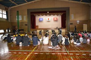 少し早めに給食を食べて、文化センターにて、午後の部に参加しました。