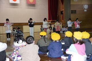 今日は、令和8年度入学児童の体験入学会がありました。会では、現1年生が、学校の学習や生活また、行事等について発表しました。大きな声でわかりやすく伝えることができました。その後、じゃんけん列車をして、現1年生と次年度の入学児童との交流を行いました。みんな楽しそうでした。新1年生の皆さん!入学お楽しみに!1年生の皆さんしっかり1年間で成長しましたね!1年生のお兄さんお姉さんらしく頑張ることができましたね!素敵でした!