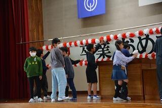 今日はあいにくの午後からの雨予報となり校内遠足としました。西階運動公園には行けませんでしたが、みんな楽しそうに活動しています。集会では、プロジェクト委員会の企画によるお別れ集会があり、○×クイズ、じゃんけん列車と6年生との交流を楽しみました。また、下級生からのお祝いメッセ時の贈呈もありました。更に5年生から6年生へのエール及び6年生から下級生へのエール返しとよい雰囲気での集会に笑顔があふれました。その後は、体育館、運動場、多目的室、図書館、教室を使っての学級や学年での交流の時間となりました。6年