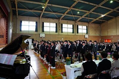 第136回卒業式が終了しました。卒業生の心がこもったとても素敵な卒業式となりました。返事、所作等練習の成果がしっかりと現れ、感謝の気持ちのこもった式となりました。また、あの歌声は、パワーのある今年の卒業生ならではの歌声だと思います。「敬意を払う!」「チャレンジ!」しっかり自分の道を切り開こう!!いつまでも応援しています!!