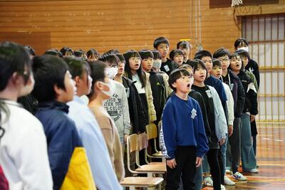 今日は、5年生・6年生合同での卒業式練習を行いました。式の流れを確認し、呼びかけと歌の練習を行いました。6年生については少しずつ緊張感をもって取り組み始めています。その姿を見て、5年生も真剣に取り組んでいました。練習を重ねながら、卒業へ向け気持ちを整えていきたいと思います。