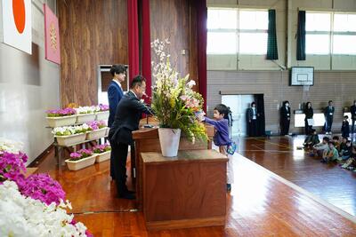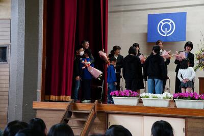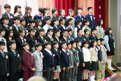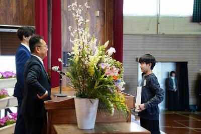 本日、修了式を行いました。今年の全ての教育課程が修了いたしました。1年前からすると大きく成長した子ども達です。「自ら幸動!」できる子ども達が増えてきています。作文発表してくれた2人の児童も自ら幸動し、自他の幸せを作り上げた1人です。今日お渡しした修了証には、子ども達の頑張りが沢山詰まっています。子どもさんの頑張りの一部だと思いますので、この一年の成長をご家族で確認し、子どもさんの「よさ」を共有してください。それが子どもさんの自信につながります。是非この1年の成長を家族で喜んでください!