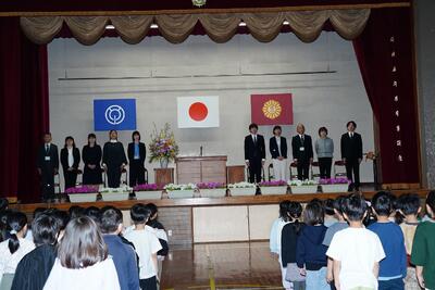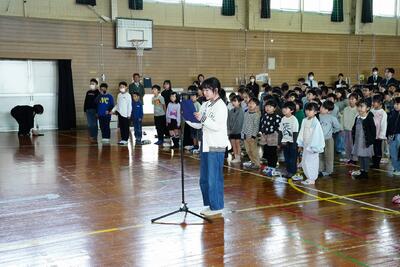 今日は、令和8年度入学児童の体験入学会がありました。会では、現1年生が、学校の学習や生活また、行事等について発表しました。大きな声でわかりやすく伝えることができました。その後、じゃんけん列車をして、現1年生と次年度の入学児童との交流を行いました。みんな楽しそうでした。新1年生の皆さん!入学お楽しみに!1年生の皆さんしっかり1年間で成長しましたね!1年生のお兄さんお姉さんらしく頑張ることができましたね!素敵でした!