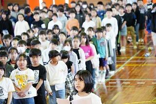 全校集会(4年生音楽祭リハーサル)