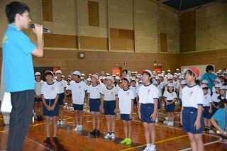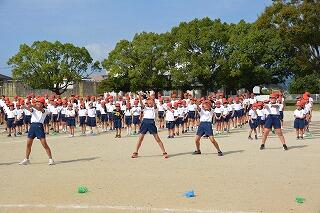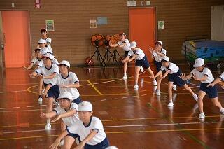 今日は全体練習②が行われ、準備体操、エール交換を主に練習しました。団長、副団長が大きな声を出し盛り上げてくれています。その他リーダーの動きも少しずつですが恥ずかしがらずにできるようになってきています。全体での練習の場を通して成長しています。これから、全体練習を通して、全校児童みんなで盛り上がっていこうと思います!