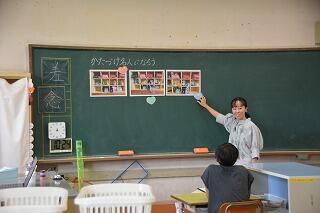 今日は2年生3クラスにおいて、延岡警察署生活安全課の警察官に来ていただき、「万引き」について考える非行防止教室を開催しました。店での番引きの場面を教師と警察官で演技し、窃盗罪や窃盗教唆について教えていただき、場面設定の子どもたちがどうすればよかったのかをみんなで考えました。今度自分がどう対処ればよいのか真剣に考えることができました。