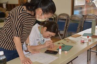 昨年度に引き続き、今回は、「レザークラフト教室」です。栞、ペンケース、名刺入れ、キーケース等それぞれに作成していました。和気藹々と楽しそうに活動していました。自分で作成した革製品です!愛着がわき、一生ものの一品ですね!