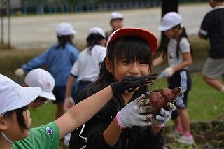 今日は、2年生が、5月に植えたいもの収穫を行いました。豊作とはいきませんでしたが、おいしそうな芋が収穫できました。うまく育たないこともある。「作物を育てる苦労を知る」これも学習ですね。