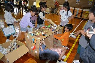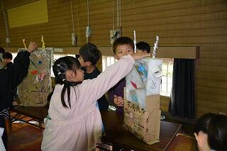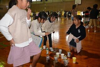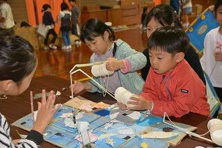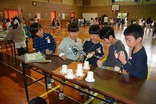 今日は、生活科の時間に「おもちゃまつり」が開催されました。2年生が作成したおもちゃを使って、1年生が楽しく遊びました。どのおもちゃもクオリティーが高く素敵なおもちゃばかりでした。1年生はみんな楽しそうに遊んでいました。お世話している2年生もとっても楽しそうでした。とても素敵な「おもちゃまつり」となりました。