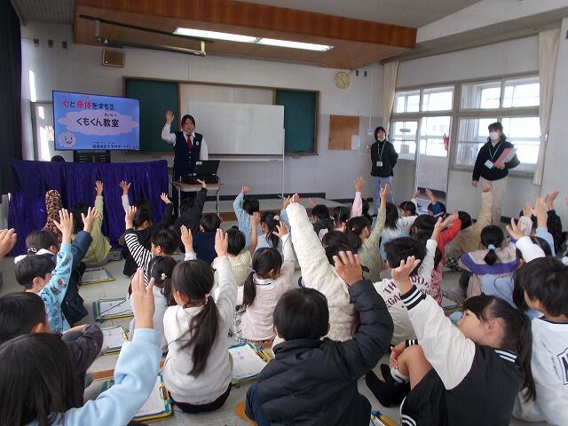今日は1年生の非行防止教室が行われました。1年生は「プライベート・ゾーン」について学びました。わかりやすく雲のペープサートなどを使いながらわかりやすく教えていただきました。子どもたちもしっかりと学んでいました。