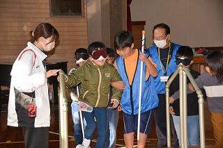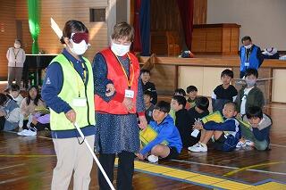 今日は、福祉体験ボランティアの方々を講師としてお招きし、3年生がアイマスク体験を行いました。アイマスク体験は、視覚を失う不安を実感させることで、私たちの生活がどれほど視覚に依存しているかを理解する福祉学習です。見えない状況での声かけや誘導を通して、障がいのある人の立場に立った支援のあり方を具体的に学びます。仲間と協力して安全を確保する過程は、思いやりや協働力を高め、インクルーシブな社会の醸成にもつながります。3年生児童も自然と、言葉かけを行いながら誘導していました。貴重な体験活動でした。