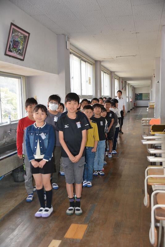給食の運搬中にこぼしてしまった廊下の汁を、拭いて回っていました。みんなのために気づいて、考えて 幸動していました。素敵です!