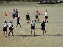 今朝は曇っていましたが、2時間目にはもう晴れていて気温も高く、運動にはもってこいの状態でした。みんなで楽しくキックの練習をしていました。