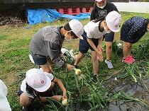 プール横の学校の畑に植えていましたが、学校技術員の先生の全面的な支援の下順調に生育し、大変な豊作でした。中には、びっくりするくらい大きなものもありました。みんな嬉しそうに一生懸命収穫していました。