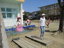 3年生は、いろいろな遊具を使って遊んだり、鬼ごっこをしたりしていました。また、ドッジボールをする子どもたちもいました。春でエネルギーが溢れかえっているような感じでした。
