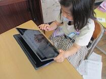 今日、1年生はタブレットの基本的な使い方を学んでいました。先生のていねいな説明の後、一生懸命操作をしていました。