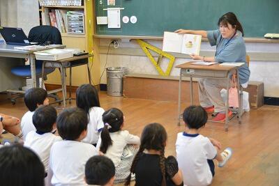 令和6年6月5日(水)、6月の読み聞かせをしていただきました。5月はPepperくん贈呈式に合わせてオンラインでロボットに関する絵本を読んでいただきましたので、各教室での読み聞かせは久しぶりです。1年生の保護者で新しく読み聞かせボランティアに参加してくださる方も見学に来られていました。虫歯予防デーの次の日でしたので、歯に関する絵本も読んでくださっていました。