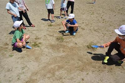 令和6年6月7日(金)、4年生男児の発案で、ウェルビーイングボードで「草むしり大会」を呼び掛けていて、昼休みに実施していました。大会といだけあって、だれがたくさん抜くかを競っていました。楽しめるし校庭はきれいになるし、一石二鳥のアイデアでした。