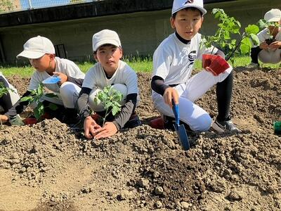 令和6年8月3日(土)、城山少年野球グラブが、コミュニティスクール事業の畑で収穫した野菜を使って、夏野菜カレーを作ってみんなで食べたそうです。カレーを煮込んでいる間には、河川敷の清掃活動をしたり、野菜づくりで支援して頂いた「日向園芸」さんにお礼を言いに行ったりしたそうです。