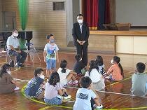 中学生の紙芝居の読み聞かせをしっかりと聞いて、紙芝居を受け取った後の感想もしっかりと言えていました。澤野教育長のご挨拶の中での質問についても積極的に答えていました。なんと最後には、報道の方のインタビューにもしっかりと対応できているので感心しました。