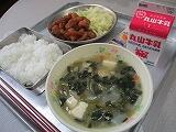 今日の給食は、地産地消メニューで「チキンなんばん」「ゆでキャベツ」「ほうれんそうのみそしる」でした。