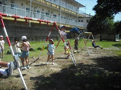 令和5年9月7日(木)、今日は暑さ指数は大丈夫だったので、子どもたちは昼休みに久しぶりに外遊びをしていました。ブランコ、鬼ごっこ、サッカー、ドッジボールなどいろんな遊びをしていました1年女子3人組は運動会かけっこの練習をしていました。