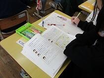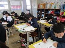 今日、4年生の1つの学級が社会科新聞づくりに集中して一生懸命取り組んでいました。