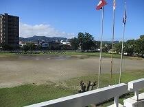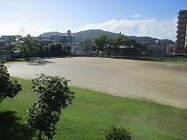 運動場が使えるかなと期待しましたが、長雨だったせいか、運動場の水たまりは昼過ぎまで残っていました。