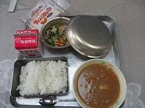 「チキンカレー」は、今日は少し蒸し暑かったので、カレーの味が食欲を刺激しました。「りっちゃんサラダ」は、1年生の国語の教科書に掲載されていた物語文「サラダでげんき」のお話の中で出てきたものを実際に取り入れたサラダです。たくさんの具が入っていてとてもおしかったです。