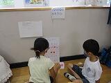 今日の3校時は、生活科の研究授業でした。単元の流れが分かる掲示物を準備したり、担任が実際におもちゃを作って実演してみたりして、「あそび方のレベルアップをめざして、ペアの友だちとあそぼう」という今日のめあてをしっかりとつかませていました。
