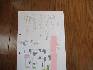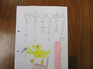 というふうに、「あ」の下に文を作って、一番上の文字が「あいうえお」になるように工夫する内容です。