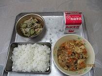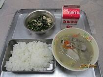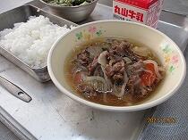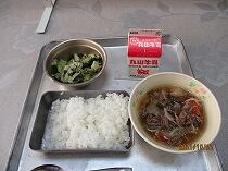 今日の給食は、地産地消メニューの「みやざきぎゅうのぎゅうどん」と「ちりめんあえ」でした。