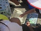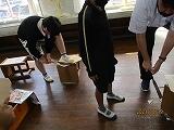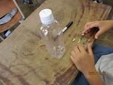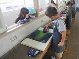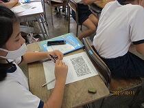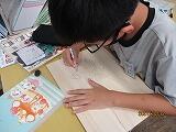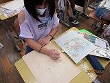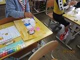 今日はこの前とは違う学級ですが、下絵を完成させ、ビー玉を押し出す棒を支える木片を取り付けるところまで作業を進めていました。