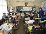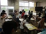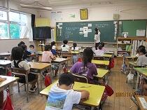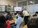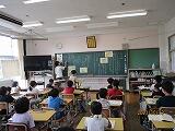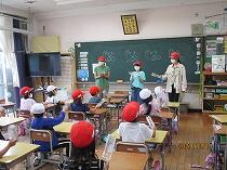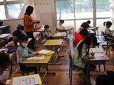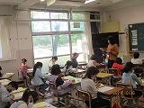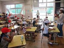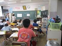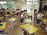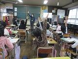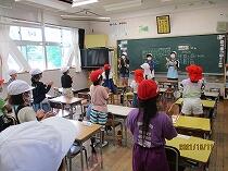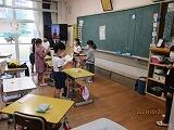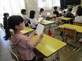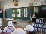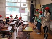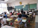 しかし、下の写真のように、外に出られない昼休みを生かして、6年生のリーダーが1年生の教室を回って、一生懸命応援の練習をしていました。1年生にとって小学校での初めての運動会。雨でも運動会を盛り上げようとする6年生の姿をどんなふうに見ているのかなと思いました。また、やがてこの1年生も6年したら、こんなお兄さん、お姉さんになるのかなと思うと感慨深いものがありました。
