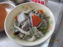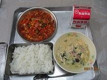 今日の「チキンライス」、「やさいとたまごのスープ」でした。