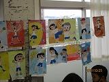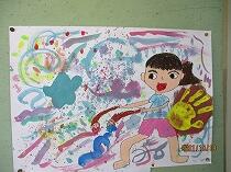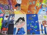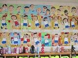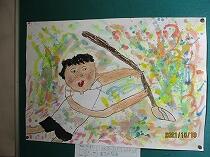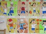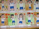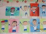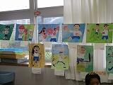 2年生も運動会の絵が完成して、教室に掲示している学級がありました。教室の横に工夫して掲示してありました。