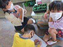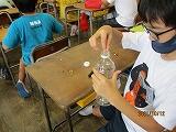 水質調査をするグループは、水の匂いを確認したり、どれくらい透明度があるか調べる実験をしたりしました。最後に薬品を使って水のきれいさを確認しました。