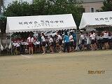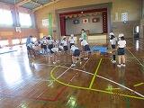 今日も、朝から雨かと思っていましたが、少し青空が見えてほっとしました。しかし、運動場は大きな水たまりがあって午前中は使えませんでした。1年生は、体育館で表現活動の練習をした後に、徒走やリレーの順番や並び方を確認していました。