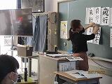 今日の5年生の習字の時間に、担任の先生が子どもたちが実際に書いた物を使って指導を工夫していました。