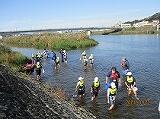 水質調査をするグループで、水生生物の調査をするグループに分かれて、それぞれ交互に実施しました。