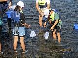 水のきれいさの指標になる水生生物を実際に採取して、どんな水生生物がいるか調べるなどしました。また、水の濁りなどをいろいろな方法で確認していました。普段の授業では学習できない貴重な体験をすることがきました。