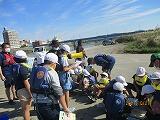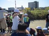 秋晴れの下、大瀬川に行きました。指導をしてくださる延岡河川道路事務所の人やリーバパル五ヶ瀬の人たちに挨拶をしてスタートしました。