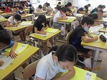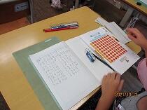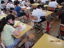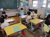 2学期になって初めてでしたが、マスクをつけて音読なども大きな声にならないようにするなど配慮をしながら実施していました。特に、100マス計算には、集中して取り組む姿が見られました。