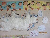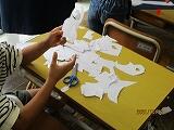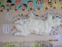 先日、昼休みに一生懸命に1年生の国語の物語文「くじらぐも」に出てくる1年生(もしかしたら、自分たちかもしれません。)絵を切り取っているところをご紹介しました。