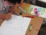 3年生の算数は、「円と球」の学習をしています。コンパスを使って円を描いたり、円や球についての学習をしたりしています。今日は、コンパスを使って、地図の長さを比べるなど、いつもと違うコンパスの使い方を学習していました。友だちどうしで、教え合ったり、助け合ったりしていました。