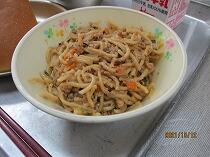 昨日の給食は、「ナポリタン」と「だいこんサラダ」でした。「ナポリタン」は給食の定番ですね。延岡小のナポリタンは具も多くて、とてもおいしいです。おいしすぎて、ケチャップのひげを生やして、昼休み一生懸命遊んでいる低学年の子どものかわいい姿を見ることができました。「だいこんサラダ」は、湯通しした大根と野菜をマヨネーズベースのドレッシングと和えてありました。ドレッシングが食欲をそそる味付けになっていました。何を使っているか聞いてみたくなりました。