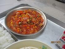 今日の給食は「ポークビーンズ」と「グリーンサラダ」でした。