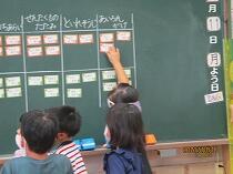 1年生の生活科は「ひろがれえがお」の学習に入りました。今日は、「お手つだい大さくせんをたてよう」という計画を立てる学習をしていました。