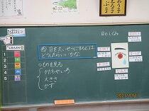 2年生の道徳で、挿絵や掲示物を効果的に進めていました。