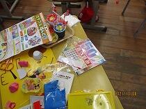 1年生図工「ごちそうパーティーをはじめよう」に取り組んでいました。カラフル紙粘土ということで、絵の具を混ぜていろいろな色にできる粘土を作って、飲み物や食べ物を作っていました。